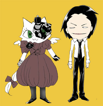 天使と屋敷の主人が空からやってきました。